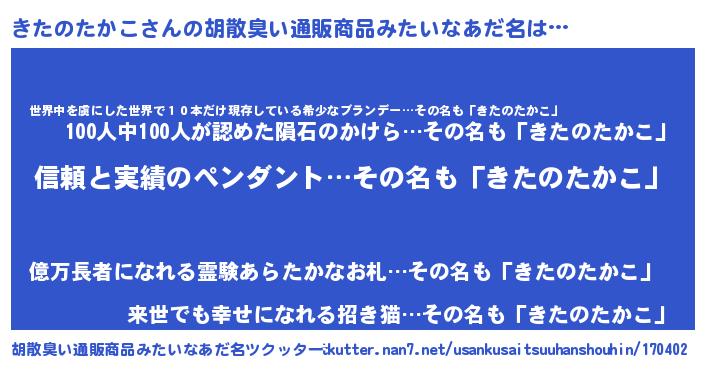 | 意味不明あだ名 | 『とにかく怪しいきたのたかこ』 |