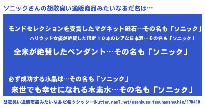 | 意味不明あだ名 | 『とにかく怪しいソニック』 |