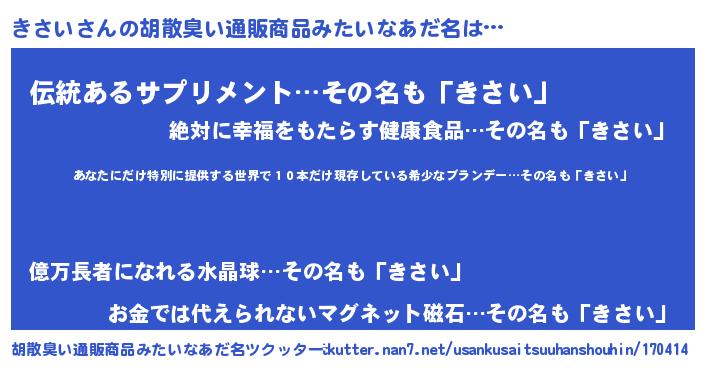 欧米人風あだ名 | 『アンジェラ・きさい』『ウサインきさい』 |