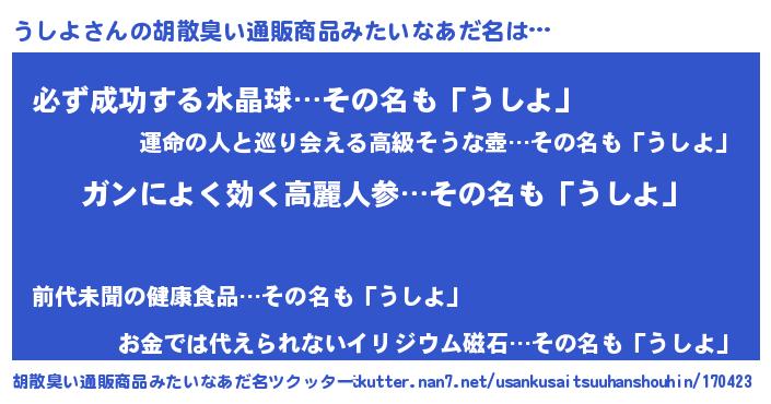 | 女子向けラノベタイトル風あだ名 | 『うしよなんてお断りですっ。』 |