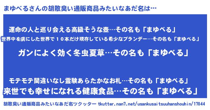 | 意味不明あだ名 | 『自称まゆベる』『まゆベるフォーエバー』 |