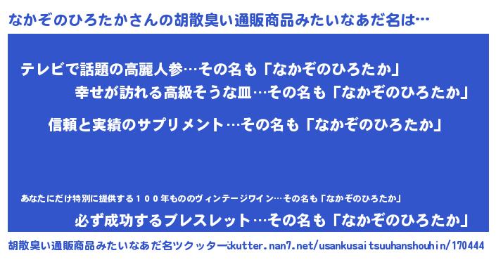 | ポケモン風あだ名 | 『ヒナカゾノヒロタカ』『ナカセウス』 |