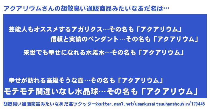 | 意味不明あだ名 | 『永久保存アクアリウム』 |