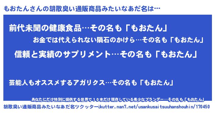 | ヘコむあだ名 | 『もおを』『もおたん(苦笑)』『牛乳』 |