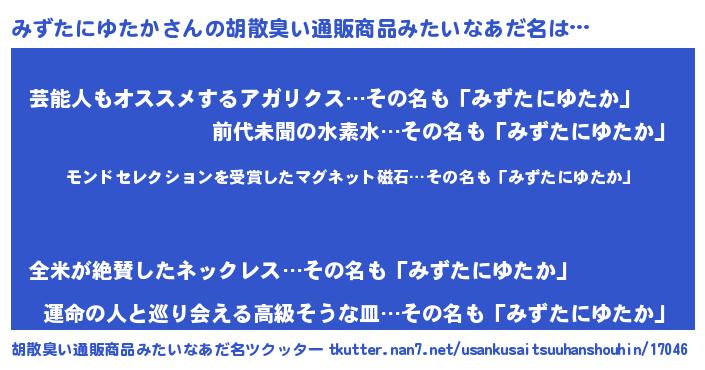 | 意味不明あだ名 | 『眠気覚ましガムみずたにゆたか味』 |