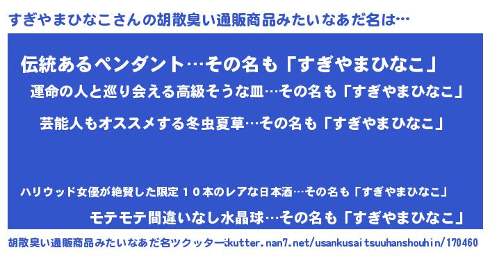 | 意味不明あだ名 | 『自称すぎやまひなこ』 |