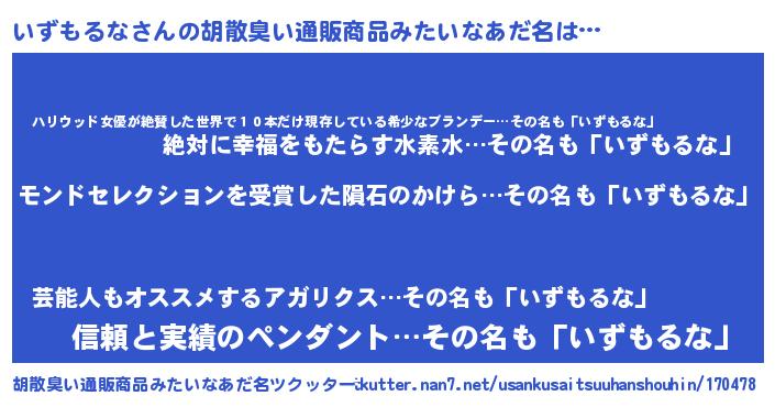 | ヒーロー風カッコイイあだ名 | 『天空の使者いずもるな』『仮面イズダー』 |