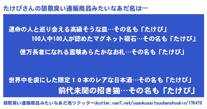 | 意味不明あだ名 | 『ペロリンたけぴ』『たけぴフォーエバー』 |