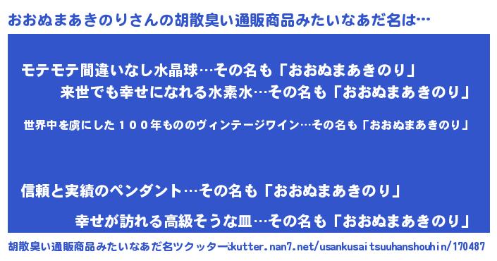 | 意味不明あだ名 | 『住所不定無職おおぬまあきのり(1歳)』 |