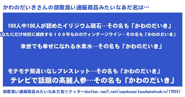 | 意味不明あだ名 | 『永久保存かわのだいき』 |