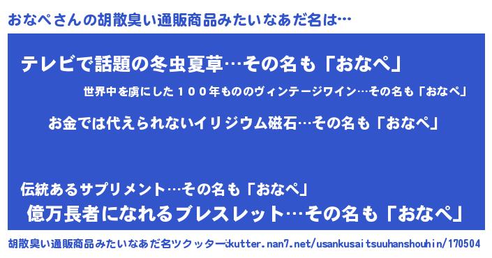 | ヒーロー風カッコイイあだ名 | 『慈愛の使者おなぺ』『スーパーオナペ』 |