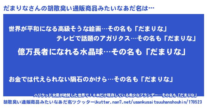 | 男性向けラノベタイトル風あだ名 | 『ダマリナアートオンライン』 |
