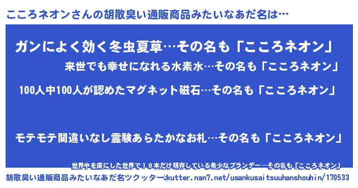 | ヘコむあだ名 | 『こころネオン(小並感)』『ここもー』 |
