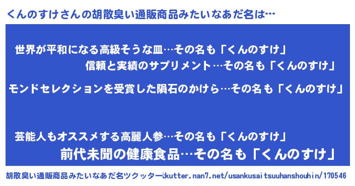 | 男性向けラノベタイトル風あだ名 | 『ノーゲーム・ノークンノスケ』 |