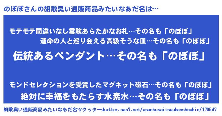 | ヘコむあだ名 | 『のぼっちょ』『のぼにゅー』 |