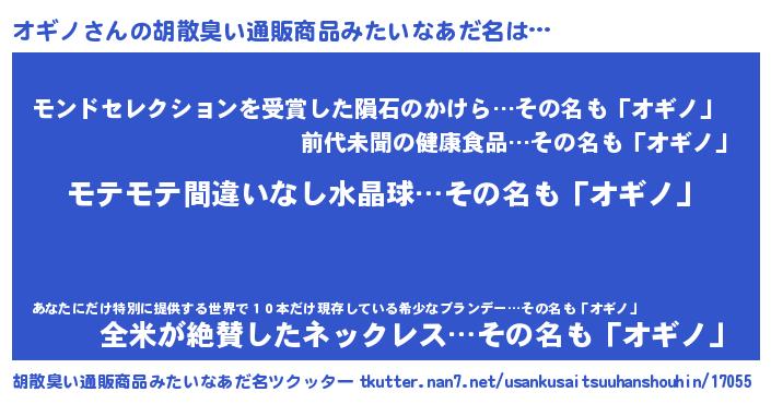 | ヘコむあだ名 | 『オギにゅー』『オギ太郎』 |
