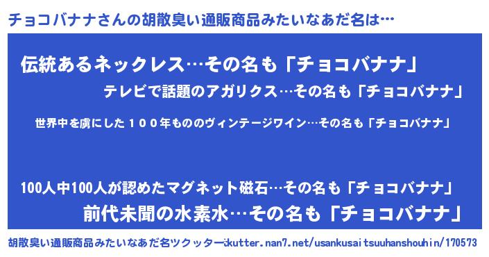 | 欧米人風あだ名 | 『ダレノガレチョコバナナ』 |