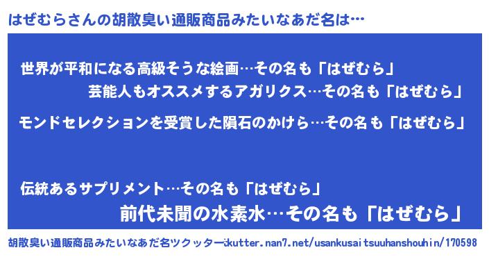 | ヒーロー風カッコイイあだ名 | 『天空の使者はぜむら』『ネオハゼムラ』 |