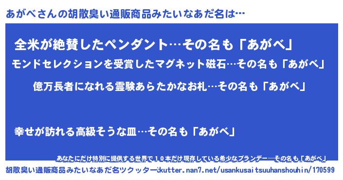 | ピコ太郎風あだ名 | 『アコ六郎』『アガ十郎』『アア太郎』 |