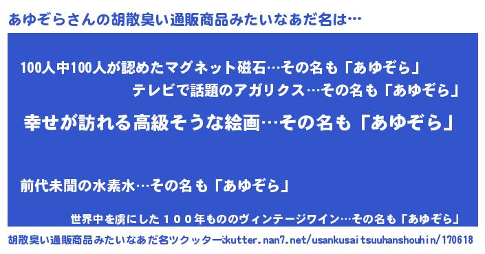 | 女子向けラノベタイトル風あだ名 | 『あゆぞらの雑貨屋さん』 |
