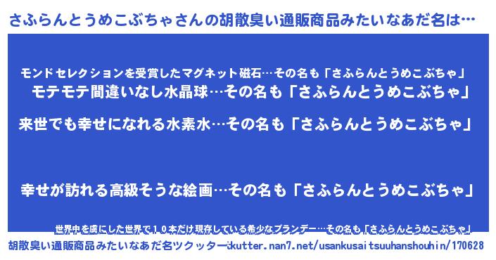 | 肩書あだ名 | 『さふらんとうめこぶちゃプロデューサー』 |