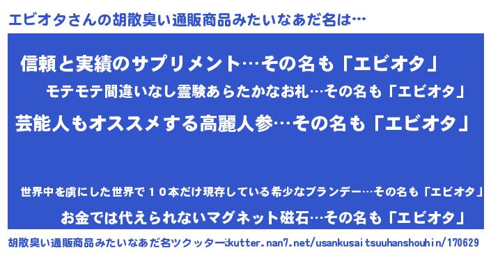 | ピコ太郎風あだ名 | 『エビ次郎』『エエ太郎』『エコ六郎』 |