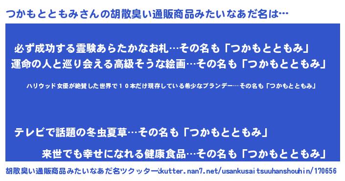 | 意味不明あだ名 | 『住所不定無職つかもとともみ(85歳)』 |
