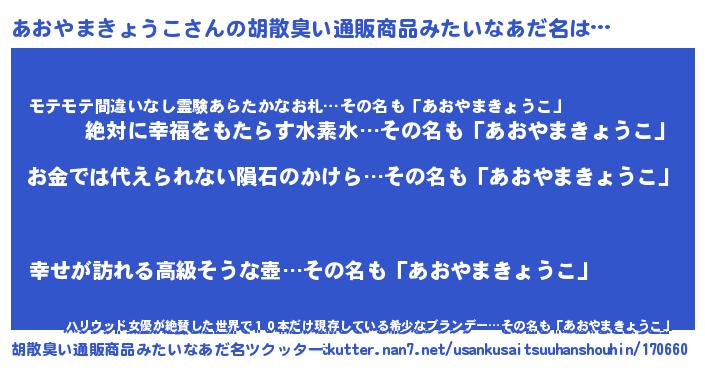 | ヘコむあだ名 | 『あおっふぃ~』『あおやまきょうこ(爆)』 |