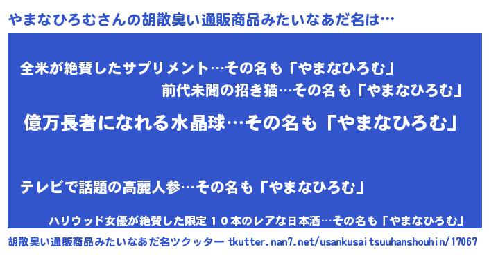 | ヘコむあだ名 | 『やまにゅー』『やまお』『酢こんぶ』 |