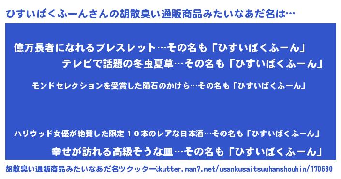 | ヒーロー風カッコイイあだ名 | 『慈愛の使者ひすいばくふーん』 |