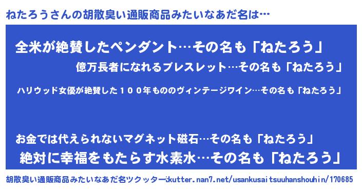 | 意味不明あだ名 | 『住所不定無職ねたろう(13歳)』 |