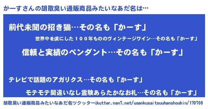 | 意味不明あだ名 | 『とにかく怪しいかーす』『自称かーす』 |