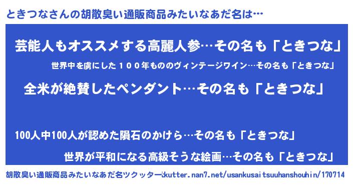 | 恥ずかしいあだ名 | 『トキリンリン』『トキツナデラックス』 |
