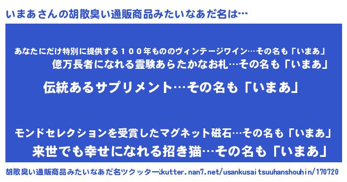 | 意味不明あだ名 | 『とにかく怪しいいまあ』 |