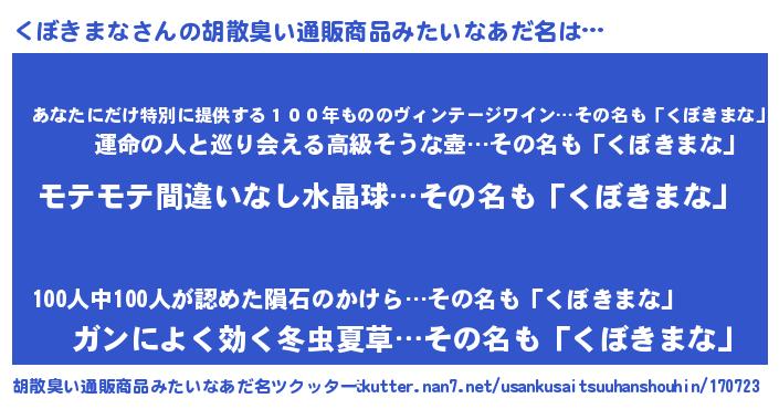 | 男性向けラノベタイトル風あだ名 | 『クボキマナアートオンライン』 |