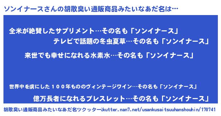 | 男性向けラノベタイトル風あだ名 | 『転生したらソンイナースだった件』 |