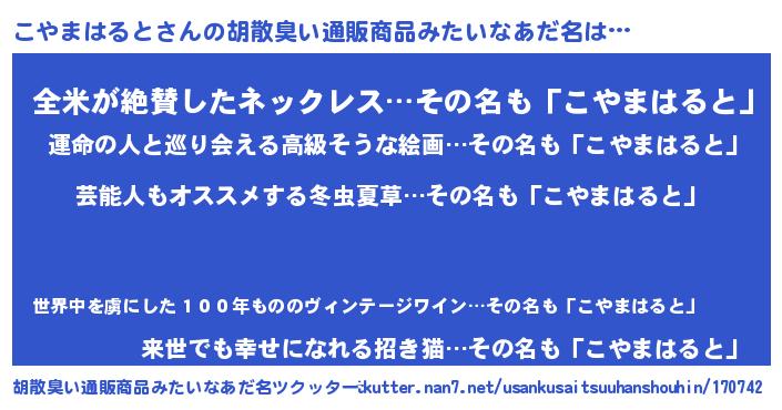 | 肩書あだ名 | 『こやまはると大将』『こやまはると総統』 |