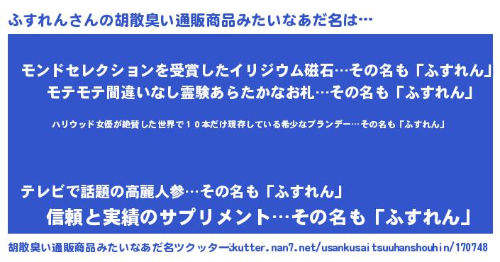 | 意味不明あだ名 | 『住所不定無職ふすれん(85歳)』 |