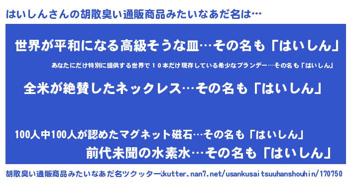 | 意味不明あだ名 | 『とにかく怪しいはいしん』 |