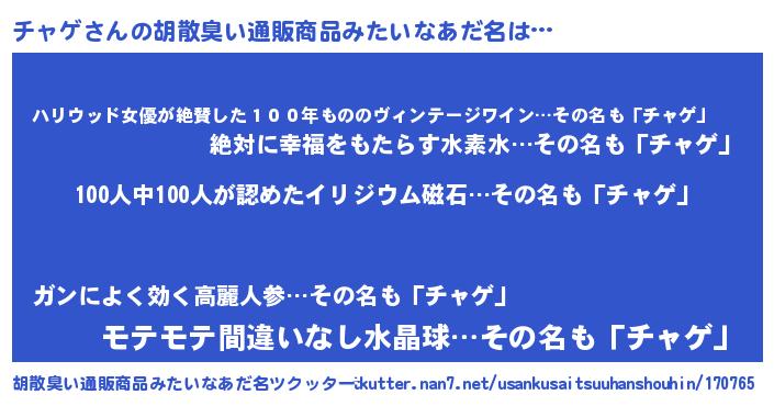 | ヘコむあだ名 | 『チャふぇ~』『チャゲ(小並感)』 |