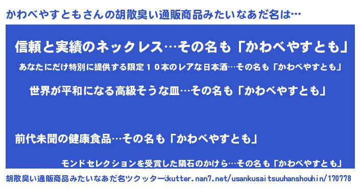 | 意味不明あだ名 | 『かわべやすともフォーエバー』 |