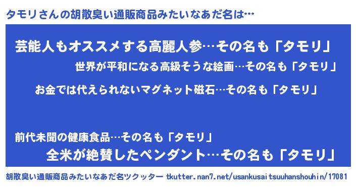 | 女子向けラノベタイトル風あだ名 | 『タモリ恋絵巻』『横柄タモリと宰相陛下』 |