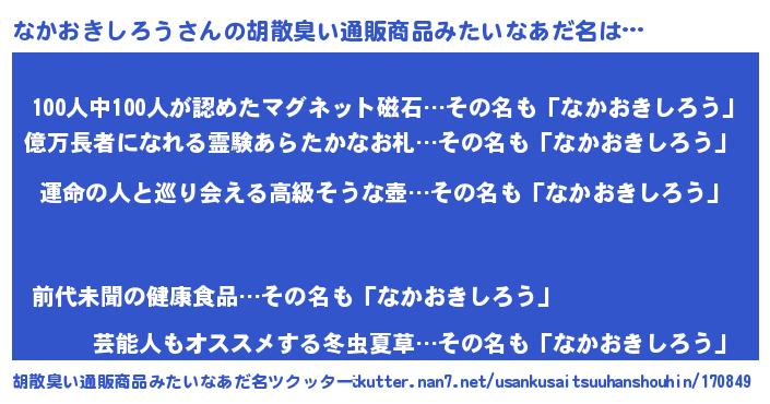 | 意味不明あだ名 | 『なかおきしろうフォーエバー』 |