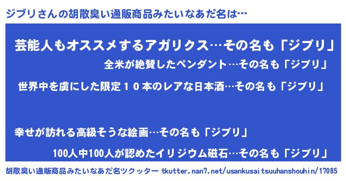 | 意味不明あだ名 | 『住所不定無職ジブリ(39歳)』『自称ジブリ』 |