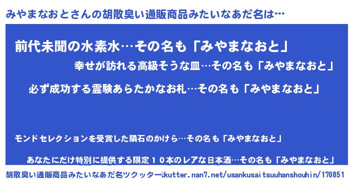 | ヘコむあだ名 | 『みやっふぃ~』『みやまなおと(震え声)』 |