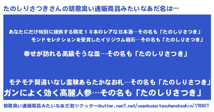 | 意味不明あだ名 | 『たのしりさつきフォーエバー』 |