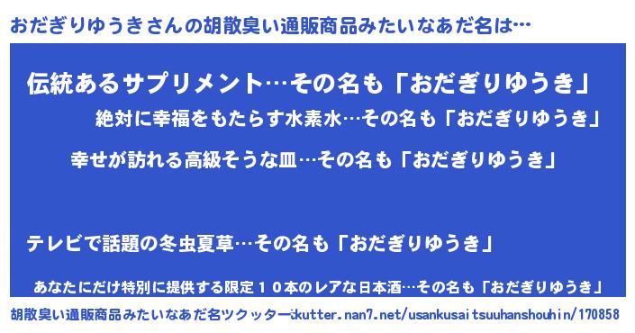 | 意味不明あだ名 | 『おだぎりゆうきフォーエバー』 |