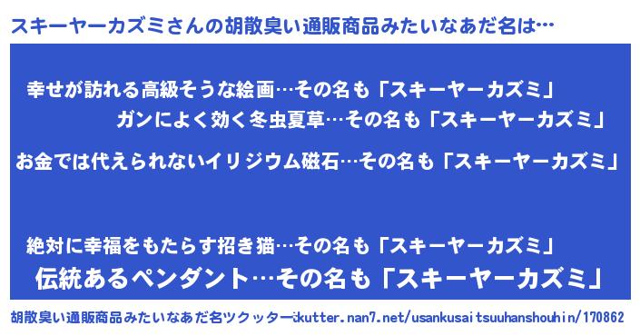 | ヒーロー風カッコイイあだ名 | 『愛の使者スキーヤーカズミ』 |