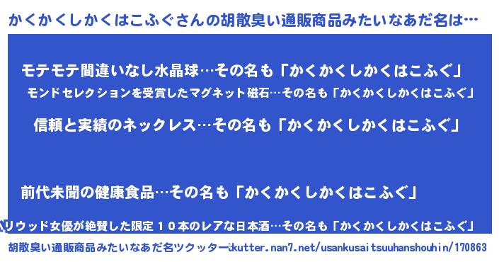 | 意味不明あだ名 | 『とにかく怪しいかくかくしかくはこふぐ』 |