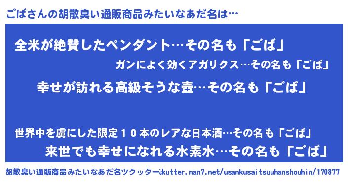| ヒーロー風カッコイイあだ名 | 『ウルトラごばマン』『幻影騎士ゴバ』 |